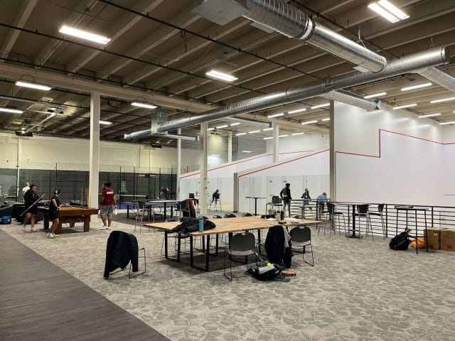 He tells me, “We built the first court when we opened in December — and it immediately took off. So, then we went ahead and built the second court. And we have the third one on deck, and are ready to build it. So, that’s pretty much how squash, padel, and pickleball all came together in this big warehouse in Minnesota.”